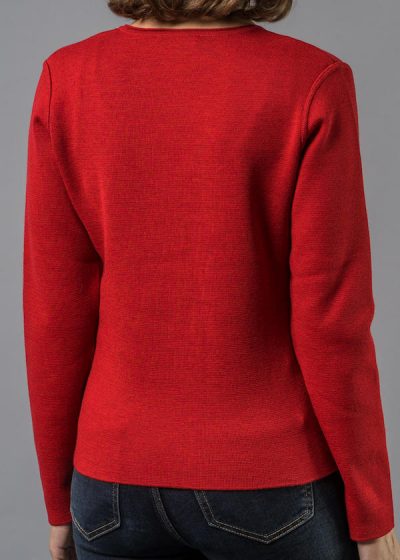 Beate ist ein typischer zeitloser Connemara Merinopullover Damen, der sowohl in der Freizeit als auch im Business immer eine gute Figur macht. Und absolut Videomeeting-tauglich! Dieser Damenpullover in rot lässt sich je nach Vorliebe mit T-Shirt, Top oder Bluse darunter kombinieren, ganz wie es ihrer Trägerin am besten gefällt.